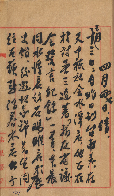 此係吳新榮寫於1957年4月7日補記3月13日日記。吳新榮昨日(3月12日)拜訪郭水潭,郭氏當時正校對吳三連《我在省議會發言紀錄》一書;本日與郭氏同訪石暘睢於歷史館;出席陳春木兒子婚禮宴會。   日記中提及的吳三連,與吳新榮同出生北門地區,是同宗叔姪,因此吳新榮常於日記中敬稱其「三連叔」。其此時正擔任第二屆臺灣省臨時省議會議員,並欲競選連任,而從吳新榮日記中可窺見其選舉歷程,以及吳新榮的協力角色,如1957年2月4日日記,提及與吳三連、陳天賜等人討論選務協力者名單等。又,《我在省議會發言紀錄》一書出版於1957年3月,目的可能為協助吳三連同年4月21日第三屆臺灣省臨時省議會議員選舉宣傳。   此外,「歷史館」應指「臺南市歷史館」,前身為「臺灣史料館」,設立於1932年,目的為保存臺南鄉土資料與歷史文物,1963年更名為「臺南市民族文物館」,2003年又更名為「鄭成功文物館」迄今。又,石暘睢為當時臺南市歷史館管理員,常與吳新榮採訪臺南地區歷史文物。
