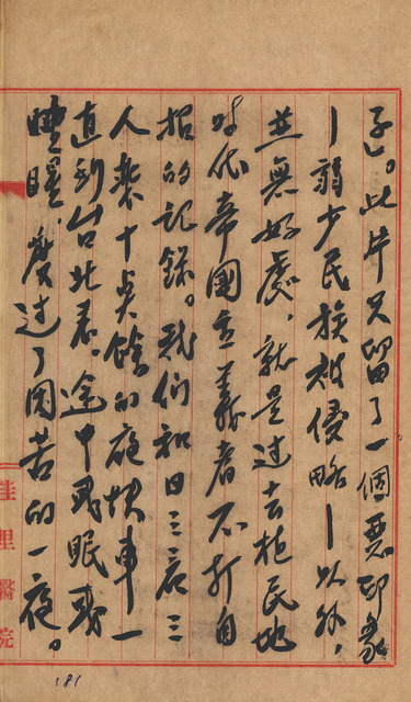 此係吳新榮寫於1957年5月4日補記4月26日日記。吳新榮本日偕繼室林榮樑至新營;將林氏安頓於陳長發住家後,前往文獻會辦公;與陳日三至新營戲院看法國電影。   日記中提及的「文獻會」,即指臺南縣文獻委員會。該會成立於1952年11月12日,吳新榮當時以「地方人士」之身分,擔任委員兼編纂組組長至今,而其任內重要成果為出版《南瀛文獻》與編纂《臺南縣志》,因此於其日記中常見有關記述。   此外,陳長發與吳新榮同為「佳里青風會」成員,而陳日三為其長子。又,陳日三為臺南縣文獻委員會編纂組組員,與吳新榮關係友好。   再者,從吳新榮日記中,可知其愛好電影,常與親友一同至戲院觀賞,如1957年2月3日日記,提及與徐清吉至南都戲院看美國電影;同年2月17日日記,提及與黃庚申等人至大全成戲院看美國電影;以及本日所提等,可從中窺見當時電影產業及臺南地區戲院之發展。
