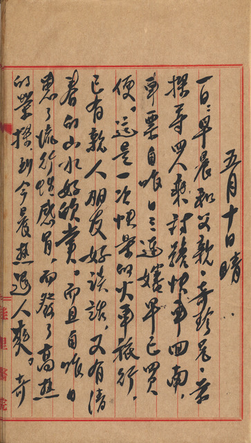 此係吳新榮寫於1957年5月10日補記5月1日日記。吳新榮本日和父親吳萱草等人一同從臺北搭火車南下;昨日患病發燒的繼室林榮樑已退燒;抵達佳里前,先至文獻會辦公。   吳新榮為出席於基隆舉行的「全省文獻工作研討會」等事,於4月26日晚間前往臺北,直至今日返回佳里。   日記中提及的「文獻會」,即指臺南縣文獻委員會。該會成立於1952年11月12日,吳新榮當時以「地方人士」之身分,擔任委員兼編纂組組長至今,而其任內重要成果為出版《南瀛文獻》與編纂《臺南縣志》,因此於其日記中常見有關工作記述,如1957年1月29日日記,提及繳交《南瀛文獻》稿費予石暘睢等人;同年4月27日參與「全省文獻工作研討會」;以及同年4月28日提及追討《臺南縣志》稿債等。