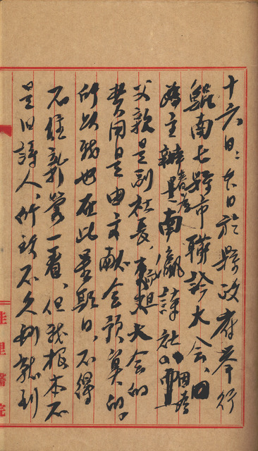 此係吳新榮寫於1958年3月27日,補述3月16日日記,台南縣政府舉行七縣市聯吟大會,主辦者為南瀛詩社;到南都戲院看電影。   日記中提到的聯吟大會係指鯤南七縣市聯吟大會,據吳新榮在《震瀛採訪錄》所載,鯤南七縣市是指濁水溪以南的七縣市:雲林縣、嘉義縣、臺南縣、臺南市、高雄縣、高雄市和屏東縣。第一屆聯吟大會在臺南市舉行,會上決定往後於每年春秋兩季,由各縣市輪流舉辦一次。1958年的聯吟大會由台南縣的南瀛詩社主辦,吳新榮父親吳萱草時為副社長,吳新榮亦協助幫忙。