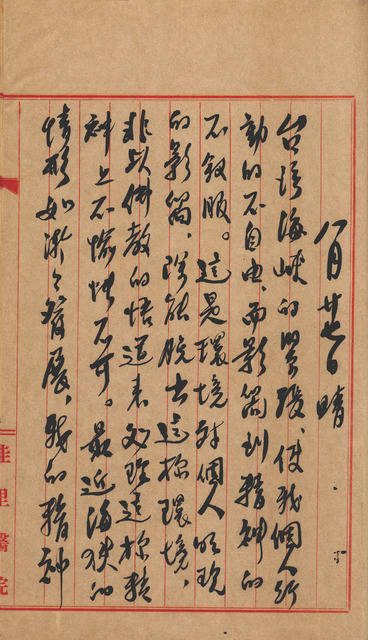 此係吳新榮寫於1958年8月27日日記,近日台灣海峽局勢緊張;昨天到台南縣文獻會處理會務,收到黃明富來信表示南河轉學需繳交十萬元的費用,否則難以轉醫學院;今天下午和兒子南河等人到修禪院探望榮樑母親。   日記中提到台灣海峽局勢緊張,是指1958年的台灣海峽危機,即第二次台海危機,又稱「八二三炮戰」,該戰役起自1958年8月23日起,中國密集向金門等地炮擊,該戰役一直持續至1959年1月7日。另,日記中提到的黃明富對吳新榮次子南河轉系提供協助,從吳新榮1957年底至1958年9月左右的日記,常可見到他忙於聯繫南河轉系醫學院一事,費了不少心力,1958年9月下旬,商請黃明富協助聯繫高醫院長杜聰明和董事長陳啟川幫忙後,始於1958年9月30日完成轉學手續。黃明富是吳新榮在東京中野時期,寄宿於旭翠寮的臺灣留學生之一,是新榮就讀東京醫專時低二班的學弟,也是1936年1月成立的旭翠會成員之一,返台後在高雄市開業擔任小兒科醫師。
