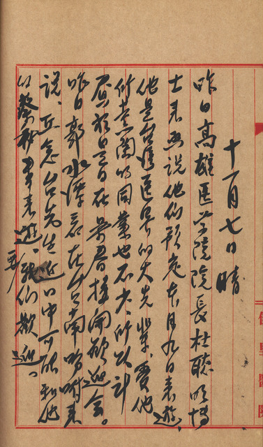 此係吳新榮寫於1958年11月7日日記,杜聰明預定今日來遊,吳新榮計畫在樂春樓開歡迎會;近日,想改種花卉,在花園各處栽種各類蔬果、植物。   日記中提到的杜聰明是台灣第一位醫學博士,在吳新榮1958年日記中,亦可見次子南河考取高雄醫學院後,為轉系一事,與校長杜聰明有多次聯繫。又,日記中提到種花一事,是吳新榮一直以來的興趣。吳新榮於1933年9月4日重拾寫日記習慣,日記中及提及,行醫之餘,平日除讀書、養鳥和栽花亦是興趣之一。