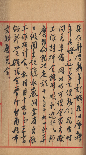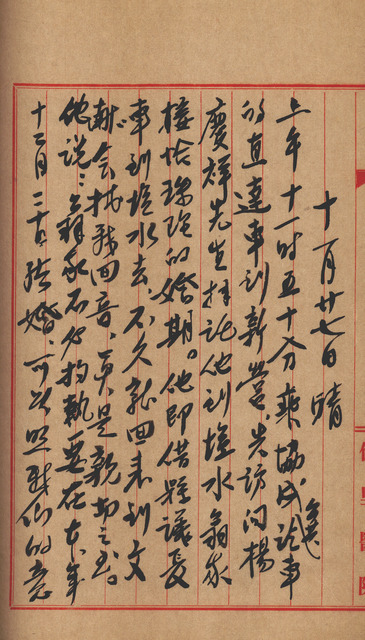 此係吳新榮寫於1958年11月27日日記,早上拜訪楊慶祥,請託接洽女兒珠理的婚事;預定於12月19日至20日舉行台灣省文獻工作研討會,預定12月19日至21日舉行台南縣市文物展覽會。   吳新榮對民俗、地方文獻有興趣,1952年台南縣文獻委員會成立,吳新榮擔任委員兼編纂組組長,1953年3月《南瀛文獻》出版創刊號,吳新榮於也自同年4月開始持續到各縣市採訪,並與南瀛各縣市文獻委員會交流。從戰後吳新榮日記和《南台灣采風錄》、《震瀛採訪錄》中可以看見他對地方史蹟、廟宇、文物等歷史沿革的採訪,之後並投入籌辦全台文獻工作研討會,在南瀛地方文獻史料的採集方面有其時代意義。又,台南縣市文物展覽會是年由臺南兩縣市共同舉辦,展場在臺南縣議會大禮堂,據吳新榮在《震瀛採訪錄》所載,展出物件共有:圖書、志書、文書、叢書、詩書、雜誌、器物、出土品、相片等九類,並以族譜和出土品為主要特色。會場上懸掛對聯:「闡揚國家歷史為人類貢獻」(右聯)和「保存民族文化為鄉土爭光」(左聯),文字中可得知該展覽會在闡揚與保存歷史、文化、民族、鄉土等面向的用心。