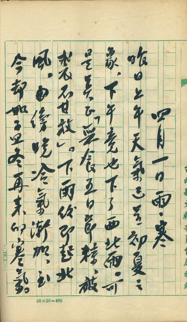 此係吳新榮寫於1960年4月1日之日記。吳新榮感慨昨日天氣如初夏,今日卻下雨轉涼。因《人物志》完成校對,吳新榮已將臺南縣文獻委員會送來的文獻資料與日本寄來的醫學雜誌看完,僅剩一部分娛樂雜誌。《人物志》出版後將排印《自然志》有江家錦、盧嘉興幫忙,是以吳新榮計畫若基隆無意外消息,將於本月實施採訪大凍山的計畫。   吳新榮於日記中提及會幫忙校對的江、盧兩氏,應為江家錦與盧嘉興。   江家錦,臺南人。在1951年與莊松林、林勇、石暘睢、連景初、林咏榮、黃天橫、顏興、許丙丁、賴建銘、黃典權等創立臺南市文獻委員會,為第一屆創會文獻委員。編著《臺南市志稿》卷二〈住民志宗教篇〉、《臺南縣志稿》〈人民志〉、〈自然志〉。曾兼職臺南縣文獻委員會顧問。江家錦精通文獻考據、化石考古、堪輿學術,由本年度3月1日日記可知吳新榮的父親及祖父之墓,都是請江氏堪輿;除此之外,吳新榮在日記中,亦有多次與江家錦討論及外出考察各地遺跡民俗的紀錄。   盧嘉興,臺南人,臺南市文獻委員會委員。任職於臺南市役所(市政府)營繕系時,在赤嵌樓修復工程期間與石暘睢結識,受其影響極大;在臺灣史領域自學有成,對於名人軼事、地理演變、歷史古蹟等議題皆有深入研究,2000年臺南市政府將其關於古典文學作家的傳記資料、作品,蒐羅彙集成《臺灣古典文學作家論集》,書中探討鄭成功、劉銘傳、沈光文、連雅堂等歷史人物,可謂深入。除此之外,盧嘉興亦透過實地田野調查與親自造訪有關人事物完成一篇篇立論紮實的文章。《臺灣研究彙集》二十四冊、《鹿耳門地理演變考》、《輿地纂要》以及《臺南縣志稿》中的疆域篇、人民志氏族篇、自然志地理篇、氣象篇等,皆出自其手中。   此二人皆有豐富的文史工作經驗,對臺南的地理變遷與環境有深入的研究,是以吳新榮非常放心,甚至已開始計畫閒暇時間。