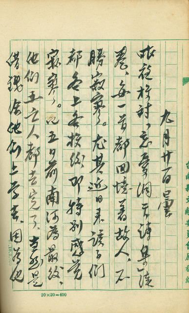 吳新榮1960年9月21日日記