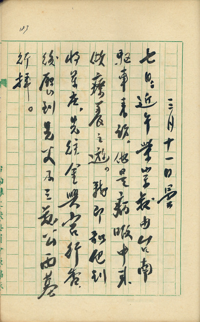 此為吳新榮寫於1961年3月11日日記,吳新榮將7日至11日日記合併於11日日記撰寫;7日,吳新榮陪同堂叔赴將軍庄,首先到金興宮行香,再至先父、三叔公墓前上香;上香後拜訪吳孔明;吳新榮等人赴北門後,因為妻子已事先聯絡,故受到王金河的熱烈招待;飯後至南鯤鯓廟行香並求乞神籤;8日,出席親族吳川田之子結婚宴;9日,出席楊嘉興嫁女婚宴;10日,晚上與妻子因無好片可看,便隨即去拜訪陳清汗;11日,與妻子、夏統、夏平、澤光一同赴戲院觀賞卡通版電影「白蛇傳」。   楊加興生於1914年,世居佳里鎮,曾任國民學校教師、農會理事長、佳里鎮鎮長、佳里老人福利協進會理事長等職,其1974年當選佳里鎮鎮長,任內極重視地方教育,規劃改建延平、佳里小學之校舍,並爭取佳里國中之興建;先前吳新榮於2月24日日記提到楊加興女兒完聘一事,因準女婿為山子腳吳姓人士,又加上自己與楊加興交情甚篤,故決定出席。   又,吳新榮拜訪陳清汗春宵故友的閒談情景;陳清汗為吳新榮好友,在日本殖民統治時期吳新榮時常與陳清汗以及周邊三五好友一同打麻將、上酒館喝酒、聊天至通霄等等,不過隨著大家年紀漸大且生活與從前不同,以往的年輕放蕩便只剩下回憶以及偶爾小聚。
