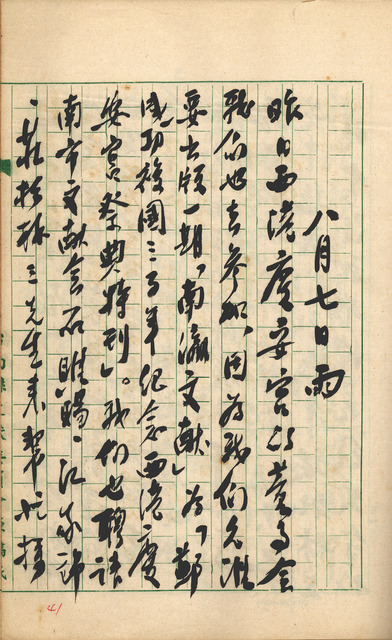 此為吳新榮寫於1961年8月7日日記,昨日(8/6),吳新榮等人為出版《南瀛文獻》為「鄭成功復國三百年紀念、西港慶安宮祭典特刊」出席西港慶安宮董事會;採訪後,吳新榮等人赴黃鄉長、郭董事長處致敬後前往臺南;抵達臺南,由林天宋先生接待至旅社,晚餐後與楊水池至大全成戲院看電影;7早晨因颱風而降雨不斷,吳新榮冒雨返回佳里;因本日為開業一週年紀念,吳新榮辦桌三桌,並招待曾對醫院成立提供協助之友人、醫院從業員及其家屬。   此前,因應鄭成功復臺300週年大祭,西港慶安宮董事長於7月18日特捐8000元予《南瀛文獻》發行特刊,為此,吳新榮以及文獻會之工作人員趁慶安宮舉行董事會時前去,採訪耆老相關資訊,以利特刊之撰寫。   又,該日為吳新榮與數位醫生合組之佳里新生醫院開業一週年,1960年6月7日日記中,吳新榮提到周顯文等4、5位醫師打算於佳里組織聯合醫院,並推舉自己作為代表人,經過2個月餘的人事整合、申請、整修,終於於1960年8月7日正式開業。