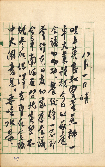 此係吳新榮寫於1962年8月1日之日記。晚上吳新榮家中召開家庭會議,討論經濟、孩子升學以及分產之事等。   關於日記中提到的家庭會議,是吳新榮家中偶爾會舉辦的會議,主要是聚集家族成員討論相關要事,如婚嫁、升學以及經濟問題等。最初於1956年時舉辦,吳新榮認為孩子們已經長大,應該讓他們了解家庭的事情、分擔責任,並將8月1日定為家庭會議日,希望往後每年都能在這一天舉辦家庭會議。   其中關於本次會議中提到的經濟問題,談及本(1962)年可能是經濟最困難的時候,等吳南河畢業後應可緩解;至於婚姻問題,隨著孩子們逐漸長大,婚姻也成為吳新榮的考慮要事之一,其中吳南河因為還要實習、當兵,因此雖有對象還是只能暫時延後,另外則是女琑琅山房兒吳亞姬,因為魏家誠意十足,打算先請男方派媒人來商量訂婚的問題,在吳亞姬結婚前打算修建琑琅山房;最後則是討論做為吳新榮行醫三十周年紀念的隨筆集出版之事,預計限定200本,加上修建小雅園的費用約8千元,打算先向聯合醫院借用。