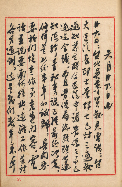 此係吳新榮寫於1965年6月29日補述6月26日日記,收到通知新生聯合醫院通過申請為勞保指定醫院一事。   日記中提到勞保指定醫院一事,是係吳新榮與醫界友人自1960年起,商議爭取成為勞工醫院,後決定成立新生聯合醫院((1960年5月9日、1960年6月29日日記),目的是為是爭取成為公務員保險和勞工保險的醫院(1961年1月1日日記)。台灣的勞工保險制度自1950年開始,1956年開始辦理疾病住院給付,或許因為有這層背景,醫界人士和吳新榮才商討辦理勞工醫院一事。申請過程稍有波折,為此,吳新榮常請託宗叔吳三連和吳尊賢幫忙。6月26日這一天,宗叔吳尊賢特來電告知吳三連已收到新生聯合醫院已通過申請。