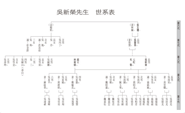 吳玉瓚/林爾/吳萱草/張實/吳新榮/毛雪/毛雪芬/林榮樑/林英良/吳國卿/吳雪如/吳三/吳國山/吳壽山/吳雪金/吳壽坤/吳南星/吳南河/吳南圖/吳朱里/吳亞姬/吳夏雄/吳夏平/吳夏統
