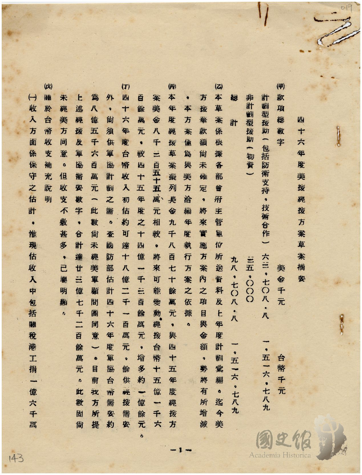 嚴家淦總統文物/文件/臺灣省政府主席時期(1954-06至1957-08)/美援