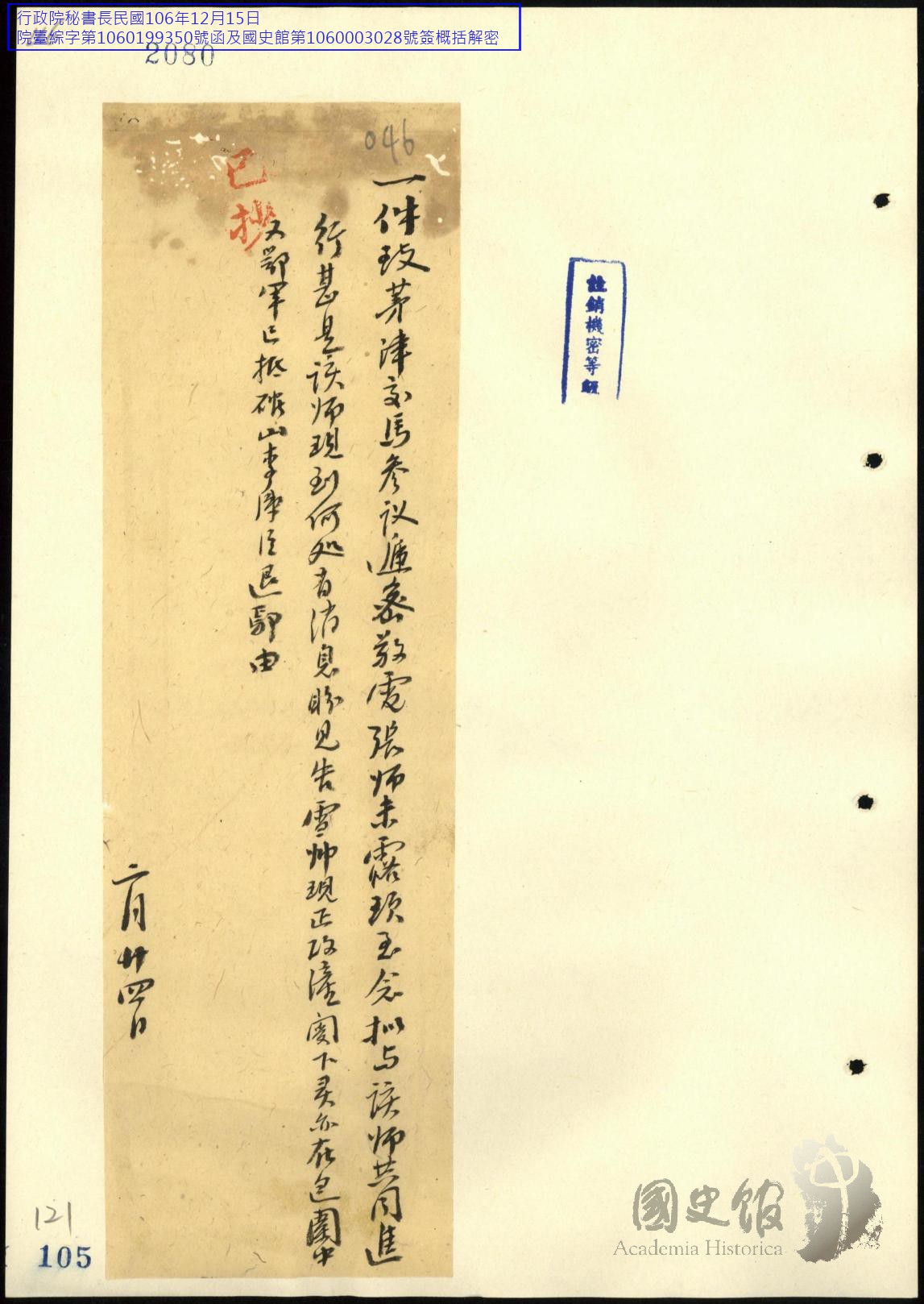 閻錫山史料/文件/電報/各方往來電文原案及錄存